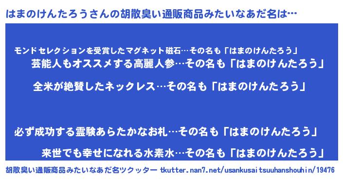 | ヘコむあだ名 | 『はまっ子』『はまのけんたろう(笑)』 |