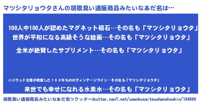 マツシタリョウタさんの胡散臭い通販商品みたいなあだ名をツクッター!