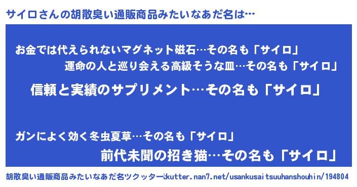 | 意味不明あだ名 | 『とにかく怪しいサイロ』『自称サイロ』 |