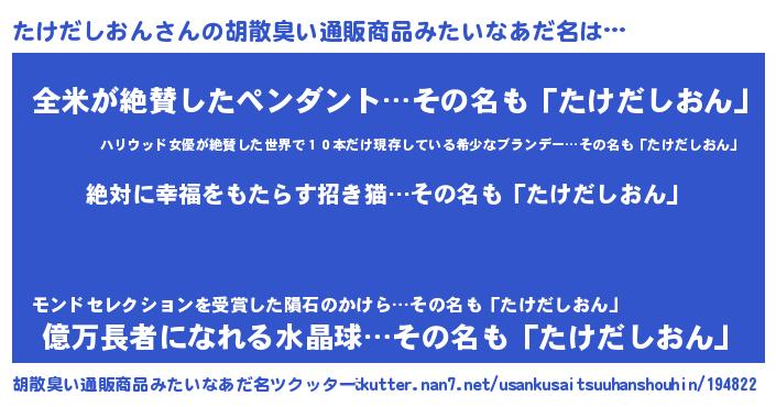 | 意味不明あだ名 | 『永久保存たけだしおん』 |