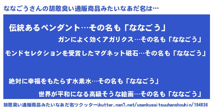 | 男性向けラノベタイトル風あだ名 | 『ノーゲーム・ノーナナゴウ』 |