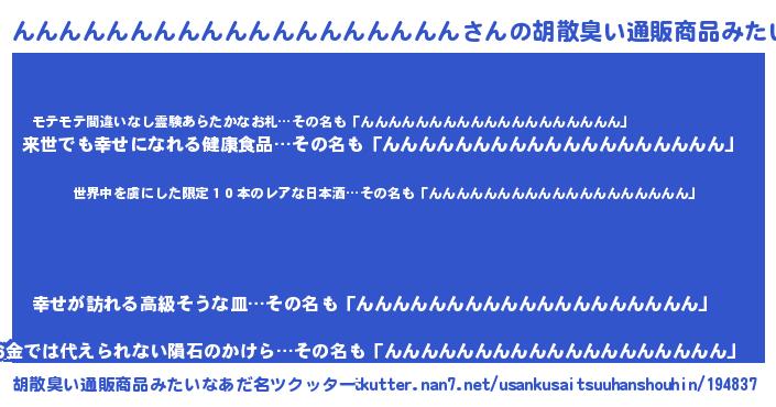| 男性向けラノベタイトル風あだ名 | 『この素晴らしい世界にんんんんんんんんんんんんんんんんんんんを!』 |