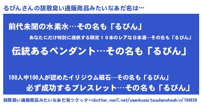 | ヘコむあだ名 | 『るびっちょ』『るびん(遠い目)』 |