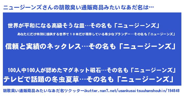 | 意味不明あだ名 | 『とにかく怪しいニュージーンズ』 |