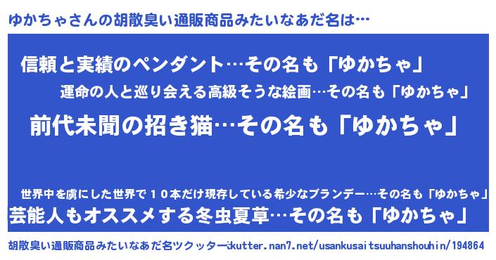 | 意味不明あだ名 | 『永久保存ゆかちゃ』『自称ゆかちゃ』 |
