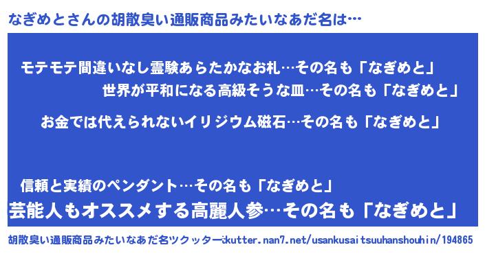 | ヘコむあだ名 | 『なぎにゅー』『豆乳』『なぎっちょ』 |
