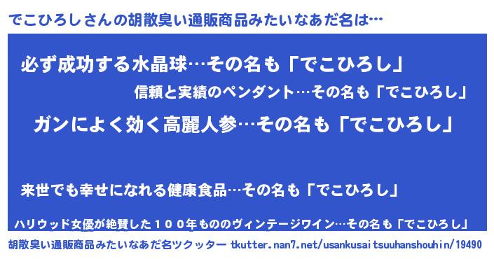 | 意味不明あだ名 | 『自称でこひろし』『ペロリンでこひろし』 |