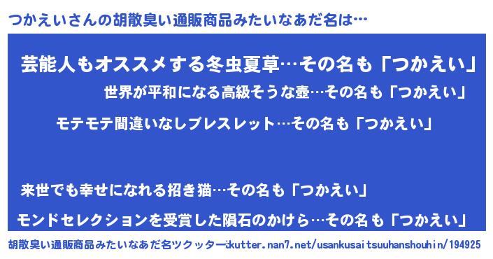 | ヒーロー風カッコイイあだ名 | 『スーパーツカエイ』『最強戦士ツカエイ』 |