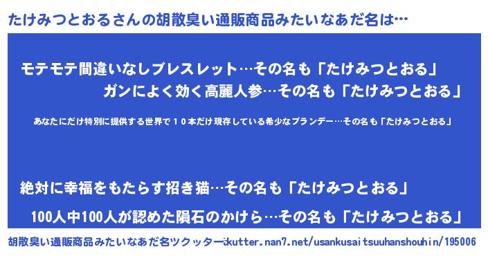 | 意味不明あだ名 | 『住所不定無職たけみつとおる(77歳)』 |
