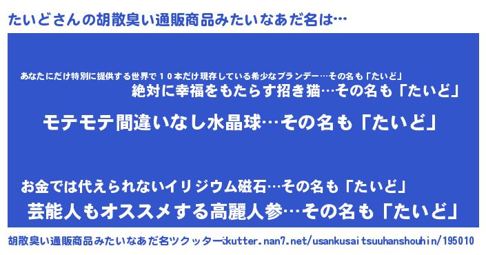 | ヘコむあだ名 | 『たいふぇ~』『たいど(震え声)』 |