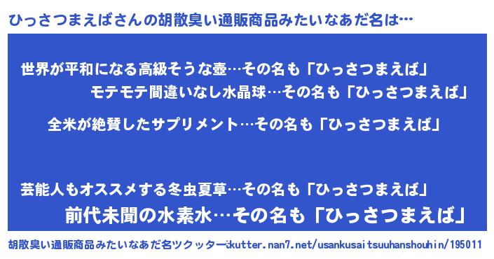 | 意味不明あだ名 | 『とにかく怪しいひっさつまえば』 |