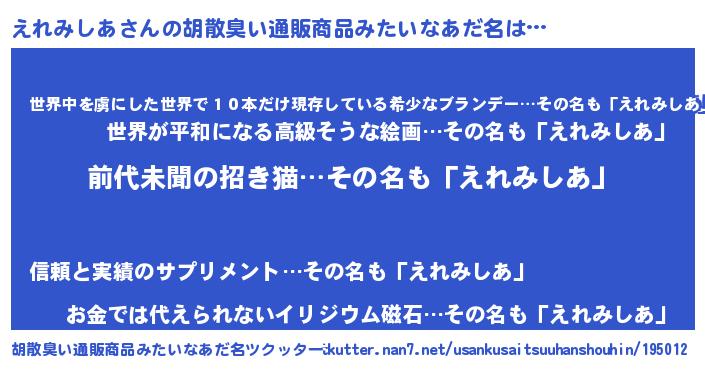 | ヘコむあだ名 | 『えれみしあ(笑)』『豆乳』 |