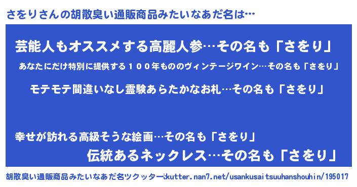 | 意味不明あだ名 | 『ペロリンさをり』『自称さをり』 |