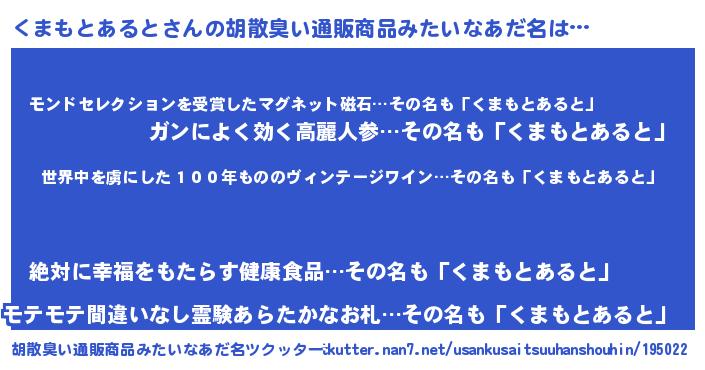 | 男性向けラノベタイトル風あだ名 | 『魔弾の王とくまもとあると』 |