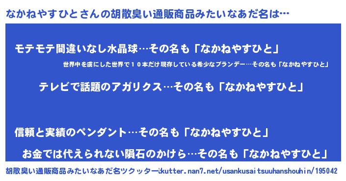 | 意味不明あだ名 | 『自称なかねやすひと』 |