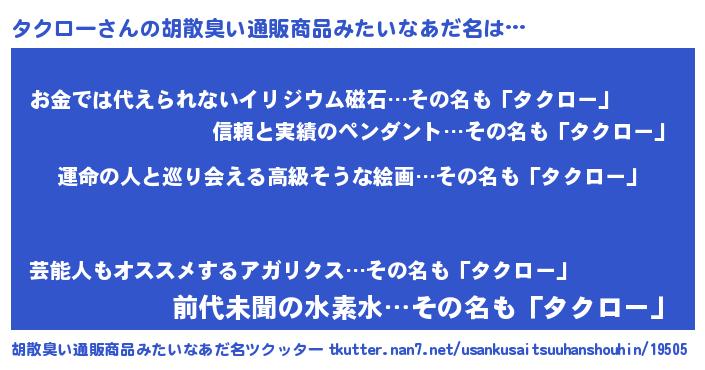 | 欧米人風あだ名 | 『タクロークリステル』 |