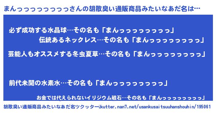 | 意味不明あだ名 | 『自称まんっっっっっっっっ』 |