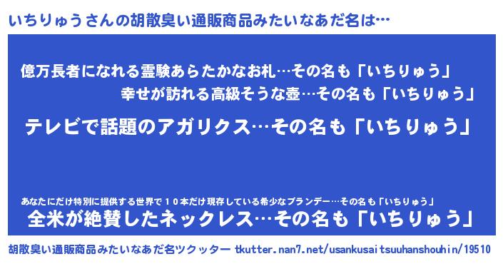 | 意味不明あだ名 | 『自称いちりゅう』『ペロリンいちりゅう』 |