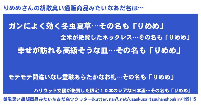 | 意味不明あだ名 | 『りめめフォーエバー』『自称りめめ』 |