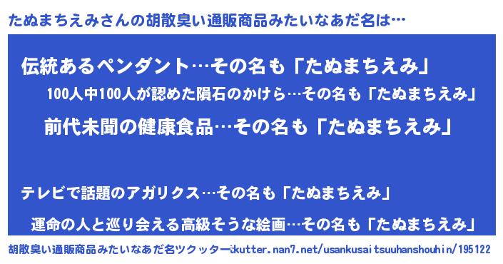 | 意味不明あだ名 | 『永久保存たぬまちえみ』 |