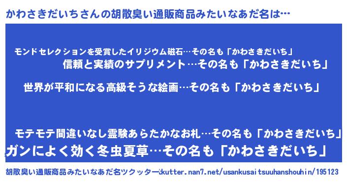 | 意味不明あだ名 | 『かわさきだいちフォーエバー』 |