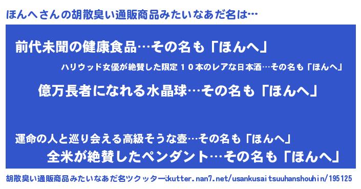 | ヘコむあだ名 | 『ほんふぇ~』『ほんへ(笑)』『牛乳』 |