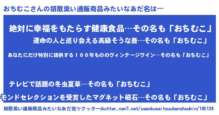 | 男性向けラノベタイトル風あだ名 | 『この素晴らしい世界におちむこを!』 |