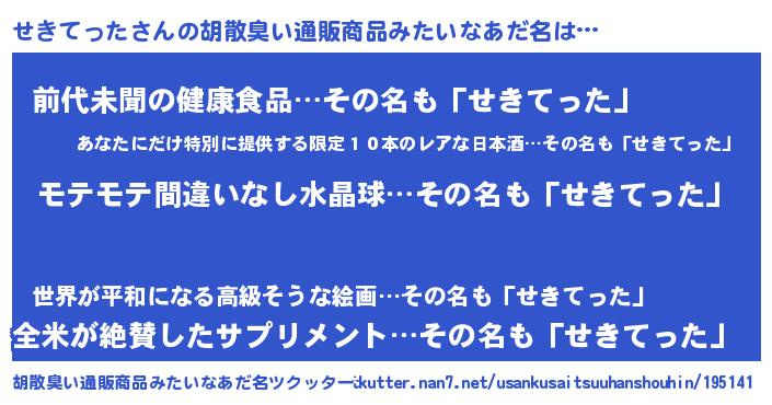 | ヒーロー風カッコイイあだ名 | 『スーパーセキテッタ』『ネオセキテッタ』 |