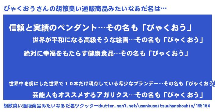 | 意味不明あだ名 | 『永久保存びゃくおう』『自称びゃくおう』 |