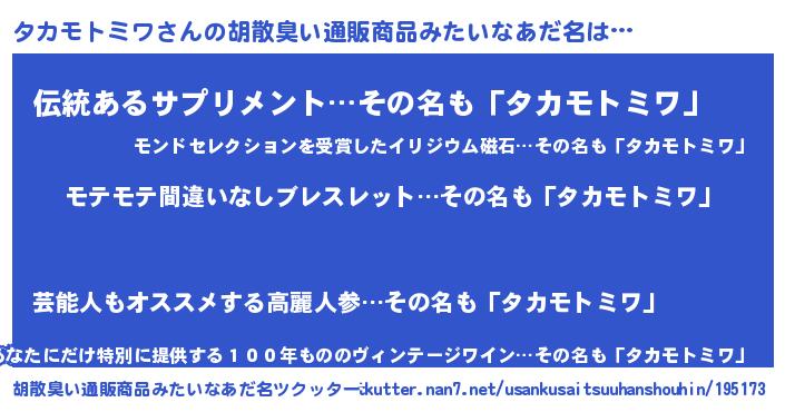 | 男性向けラノベタイトル風あだ名 | 『転生したらタカモトミワだった件』 |