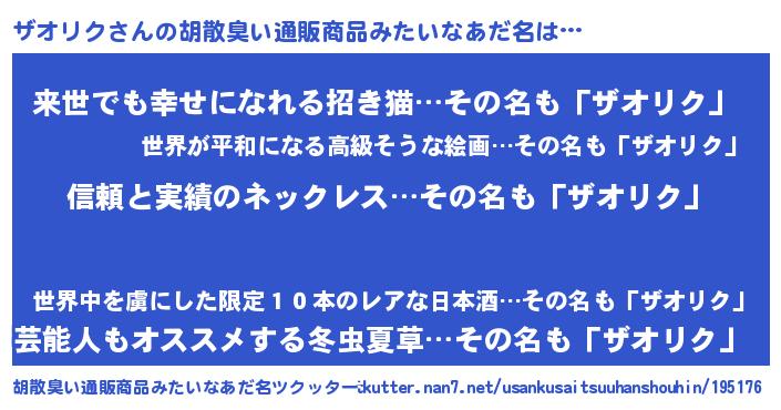 | ヘコむあだ名 | 『ザオっ子』『ザオリク(笑)』 |