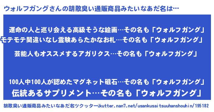| 意味不明あだ名 | 『自称ウォルフガング』 |