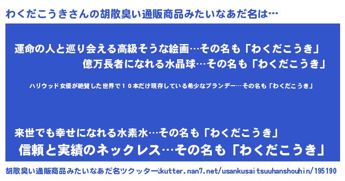 | 意味不明あだ名 | 『住所不定無職わくだこうき(77歳)』 |