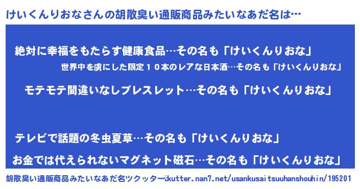 | 意味不明あだ名 | 『ペロリンけいくんりおな』 |
