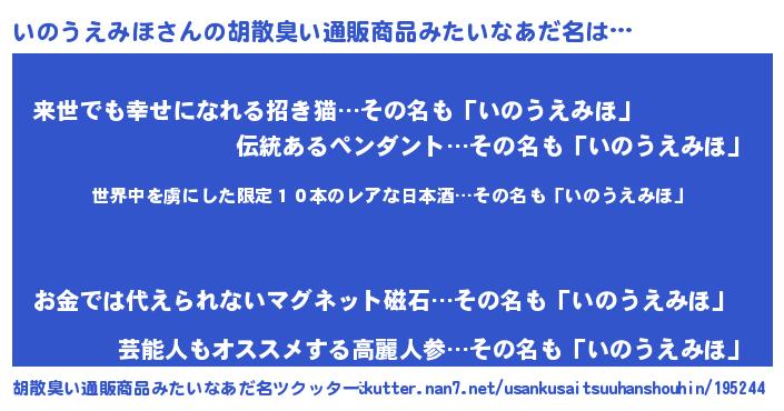 | ヘコむあだ名 | 『いのうえみほ(爆)』『いのを』 |