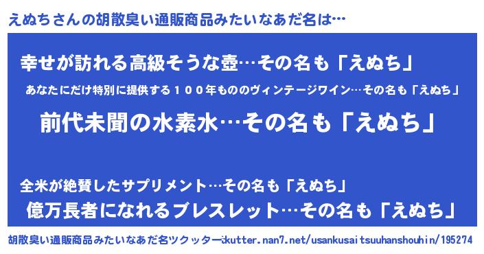 えぬちさんの胡散臭い通販商品みたいなあだ名をツクッター!