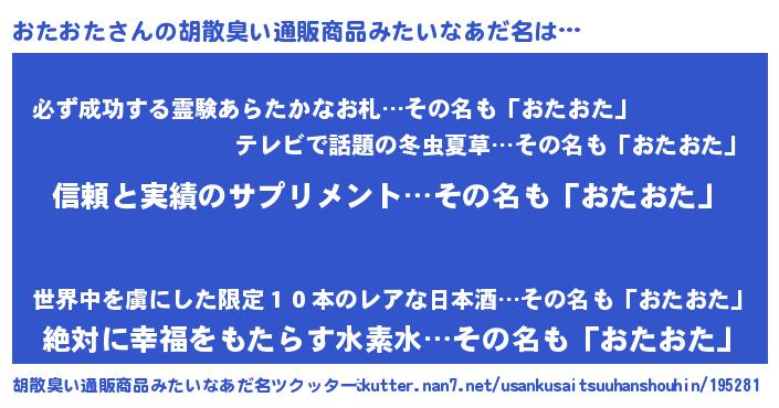 | ヘコむあだ名 | 『おた太郎』『おたもー』『なまこ酢』 |