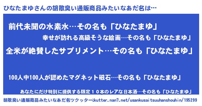 | 意味不明あだ名 | 『とにかく怪しいひなたまゆ』 |
