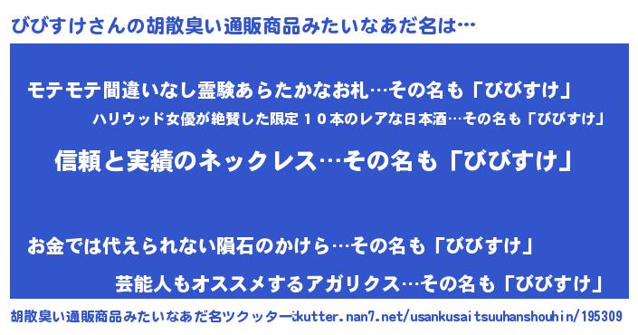 | 意味不明あだ名 | 『とにかく怪しいびびすけ』 |