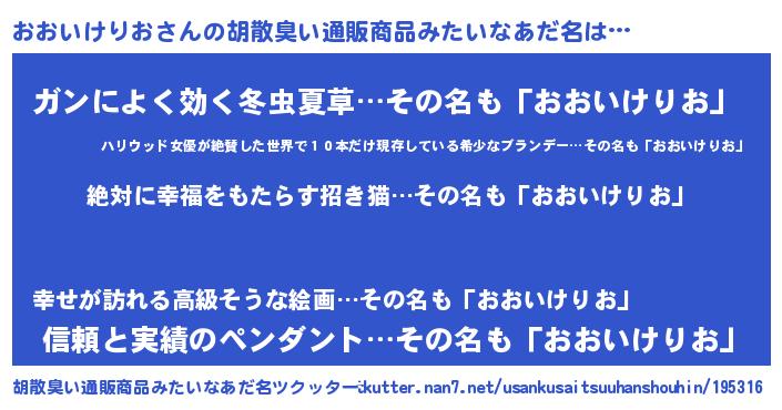 | 意味不明あだ名 | 『永久保存おおいけりお』 |