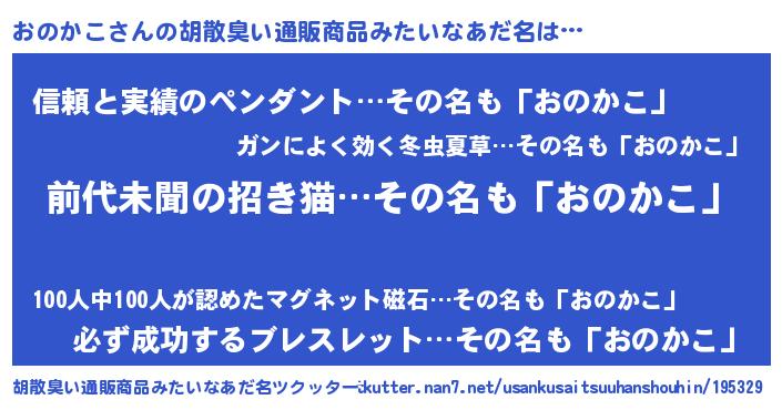 | ヘコむあだ名 | 『おのかこ(笑)』『おのを』『つくし』 |