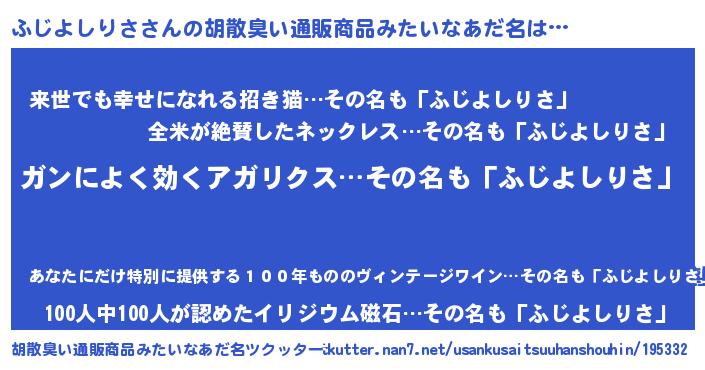 | ヘコむあだ名 | 『ふじよしりさ(笑)』『ふじを』 |