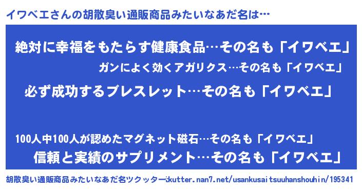 | 男性向けラノベタイトル風あだ名 | 『イワベエの憂鬱』『緋弾のイワベエ』 |