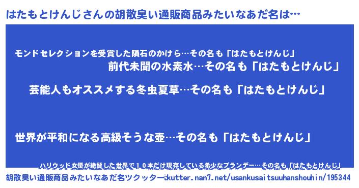| 恥ずかしいあだ名 | 『ハタモトケンジデラックス』『はたちん』 |