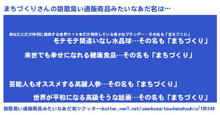 | 意味不明あだ名 | 『永久保存まちづくり』『自称まちづくり』 |