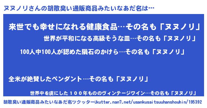 | ヒーロー風カッコイイあだ名 | 『正義の使者ヌヌノリ』『ネオヌヌノリ』 |