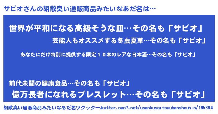 | 意味不明あだ名 | 『住所不定無職サビオ(50歳)』『自称サビオ』 |