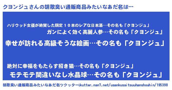 | 恥ずかしいあだ名 | 『クヨっちょ』『プリティークヨンジュ』 |