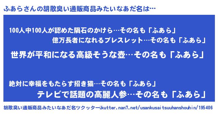| 意味不明あだ名 | 『ふあらフォーエバー』『自称ふあら』 |