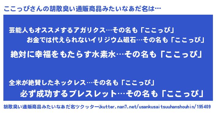 | ヘコむあだ名 | 『ここっぴ(苦笑)』『ここもー』 |